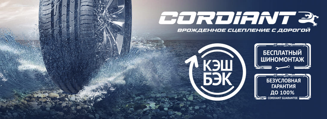 • КЕШБЭК начисляется, при покупке комплекта (от 4-х) летних шин «CORDIANT» с 16 по 18 дюймы.