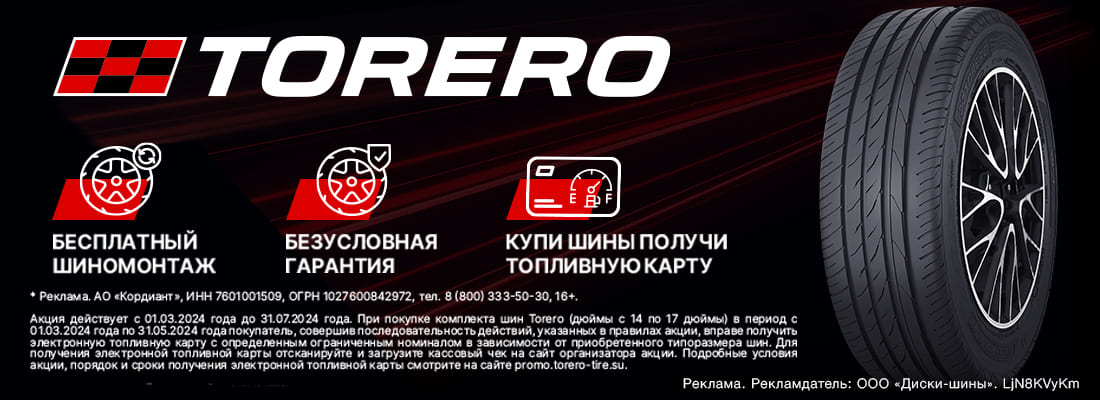 - Купите одним чеком шины Torero (14-17 дюйм) комплект из 4-х колес в период до 30.06.2024 г. включительно.