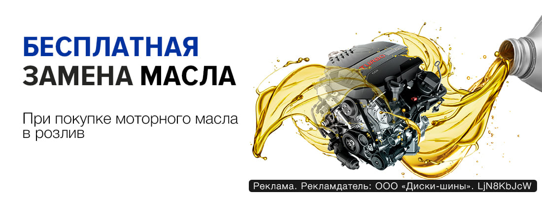 - При покупки любого моторного масла в розлив (полный объем для замены в двигателе) в шинном центре или в интернет-магазине Centershin.ru, замена масла – бесплатно.