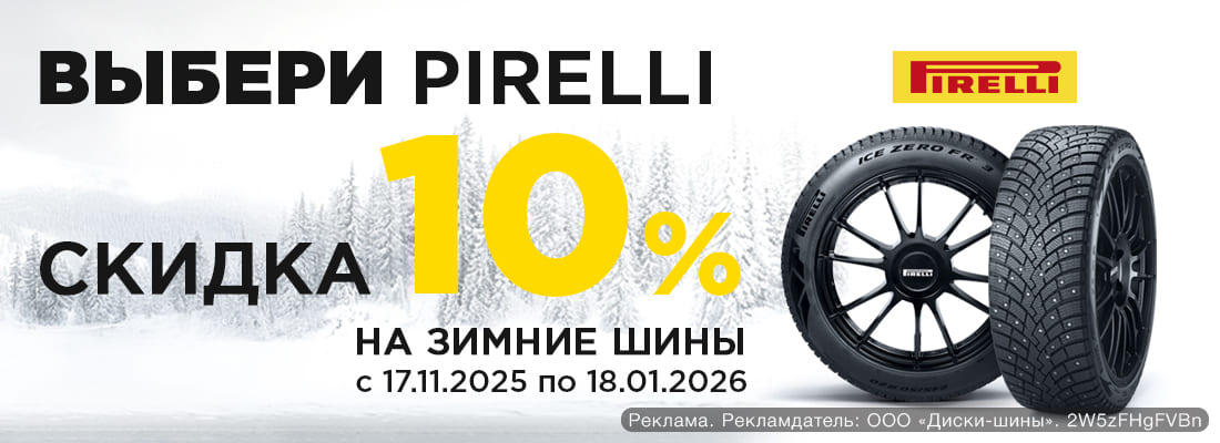 • При покупке комплекта (от 4-х) зимних шин PIRELLI (включая шин Formula) предоставляется скидка 10%.